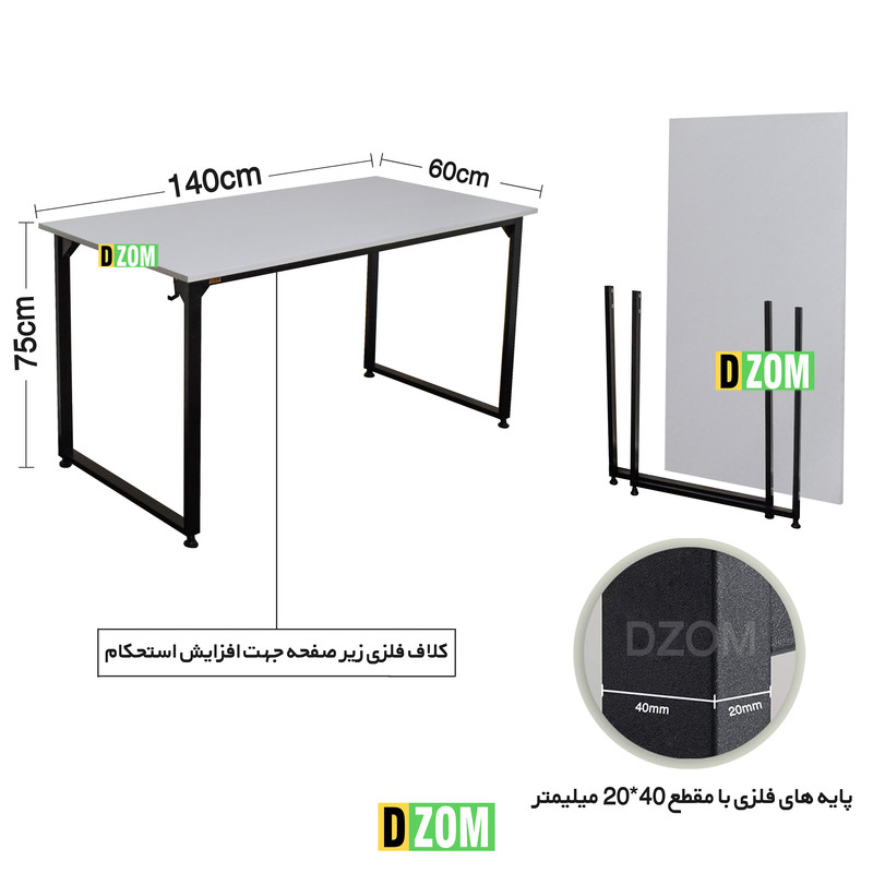 میز تحریر دیزم مدل مونتاژی WD_asm_140×60_W