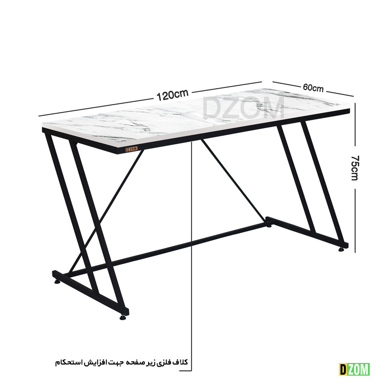 میز دیزم DZom مدل WD_49K08_120SW محصولی سبک، شیک و در عین حال جذاب و کارآمد از سری تولیدات دیزم میباشد. مشتری گرامی توجه نمایید محصولات برند دیزم (شماره ثبت 414013 اداره ثبت علائم تجاری) با کیفیت و بسته بندی اصلی تنها توسط فروشنده رسمی دیزم در دیجی کالا عرضه می گردد، لطفا از خرید کالای تقلبی از سایر فروشندگان خودداری فرمایید. این میز از پایه های فلزی با رنگ رویه الکترواستاتیک با ماندگاری و دوام بالا ساخته شده است. همچنین پایه های پیچی، قابلیت تنظیم نسبت به سطح زمین را دارد تا بهترین تراز جهت جلوگیری از تکان خوردن را ایجاد نماید. صفحه میز از جنس MDF درجه یک طرح سنگ به رنگ سفید می باشد. این محصول با طول 120cm، عرض 60cm و ارتفاع 75cm عرضه می شود. به این نکته توجه شود که تنوع رنگ انتخابی کالا تنها مربوط به رنگ پایه های فلزی میباشد و محصول به صورت کاملا مونتاژ شده و آماده استفاده برای مشتریان ارسال می گردد.