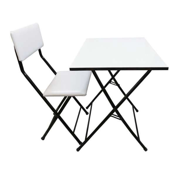 مناسب برای کودک و بزرگسال پایه فلزی محکم صفحه ملامینه ضدخش تحمل وزن بالا میز و صندلی هر دو تاشو هستند و میز قابلیت تنظیم ارتفاع دارد