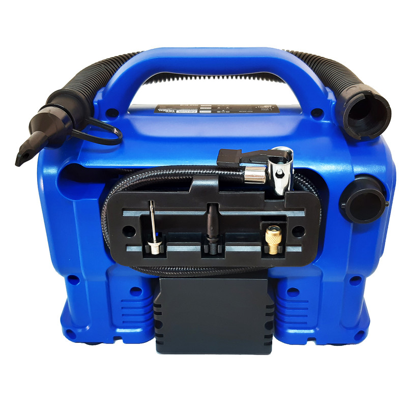 - مجهز به سیستم قطع کننده در هنگام رسیدن به فشار مشخص شده - دارای قابلیت دمندگی و لوله خرطومی جهت استفاده به عنوان بلوور - صفحه نمایشگر دیجیتال میزان فشار باد