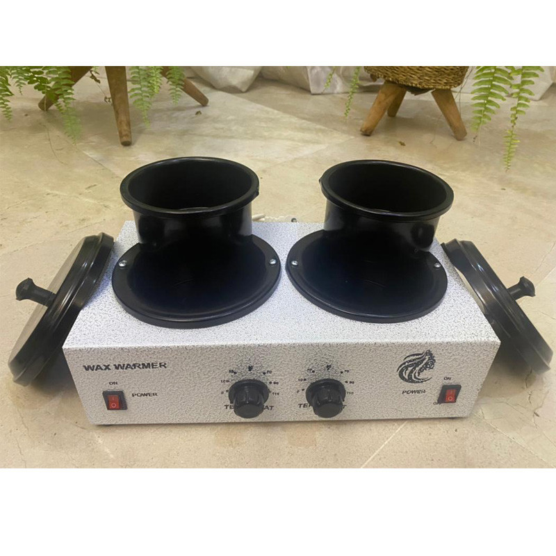 دستگاه وکس دوقابلمه ای وکس وارمر وسیله ای برای اپیلاسیون بدن وصورت هم برای آقایون و هم برای خانم ها مورد استفاده قرار میگیرد.این دستگاه برای ذوب و داغ کردن تمامی وکس ها(وکس فله .وکس قالبی .وکس سکه ای وکس عدسی..) کارایی دارد داشتن دو عدد قابلمه بیشتر برای اینکه بتوانیم در یکی از قابلمه هاکار ذوب کردن و دیگری برای نگهداری وکس ذوب شده دردمای مناسب و قابل استفاده میباشد همچنین داشتن دو قابلمه برای زمانی که وکس زیادی برای مصرف نیازداریم بسیارمناسب است.یازمانی که دویاچندنفرمیخواهند همزمان اپیلاسیون انجام دهند کارایی بالایی دارد.طول این دستگاه 35 سانتی متر و عرض آن 25 سانت وارتفاع آن 14سانتی متر میباشد.دستگاه وکس وکس وارمر برای اینکه در مصرف انرژی برق صرفه جویی شودطوری طراحی شده که بتوانیم فقط ازیکی از قابلمه ها هم استفاده کنیم چون هر قابلمه دارای کلید روشن خاموش و ولوم دمای جدا از هم را دارد.