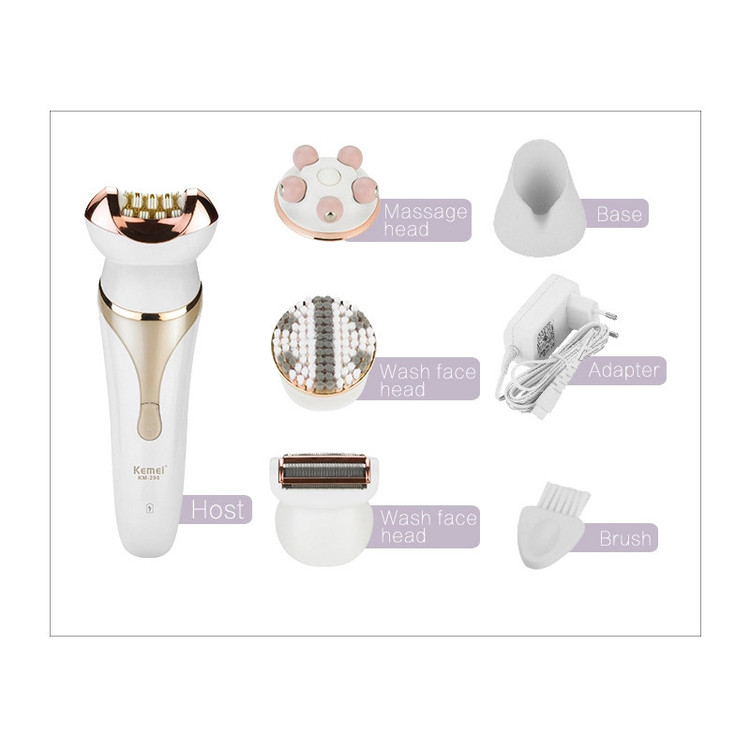دارای 4 سری متفاوت سری اپیلاتور سری شیور سری فیس براش سری ماساژور کاملا ضد آب و قابل شستشو دارای باطری لیتیومی استاندارد CE اروپا