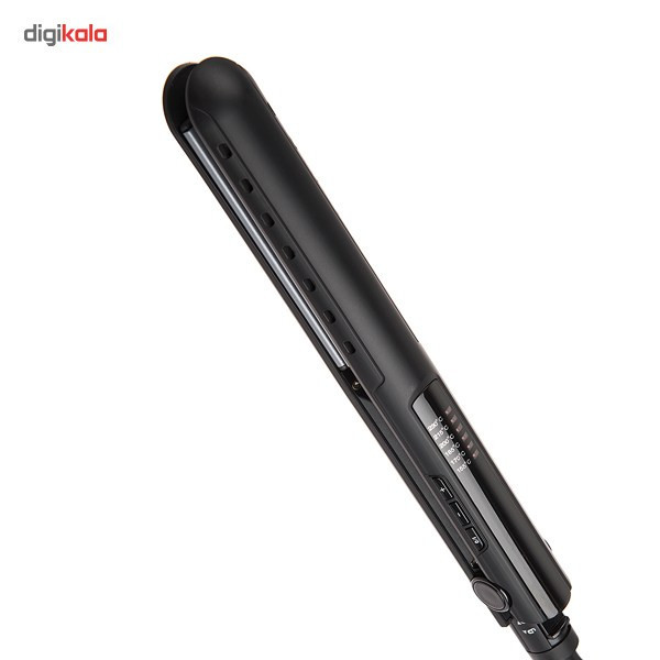 اتو موی «سورکر» (Surker) مدل «SK-947» صفحاتی سرامیکی با قابلیت تنظیم دما دارد. این محصول دارای صفحاتی آلومینیومی پوشش داده شده با سرامیک است که دما را به شکل یکسان، در طول صفحات پخش کرده و از آسیب به مو جلوگیری میکند. عرض این صفحات 2.5 سانتیمتر و طول آنها 11 سانتیمتر است که باعث میشود این اتو مو برای موهای پرپشت و بلند مناسب باشد. روی بدنه، سه دکمه دیده میشود که یک دکمه برای خاموش و روشنکردن اتو مو و دو دکمهی دیگر برای تغییر دما استفاده میشود. دمای اتو مو را میتوان از 155 درجهی سانتیگراد تا 230 درجه تغییر داد. این تغییرات در بازههای 15 درجهای و در 6 دما امکانپذیر است. دمای تنظیمشده توسط نشانگرهای قرمزی که در کنار اعداد قرار دارند، نشان داده میشوند. در قسمت انتهایی اتو مو، قفل صفحات قرار دارد که دو صفحه را روی یکدیگر قفل میکند. سیم اتو مو 2 متر طول دارد و در محل اتصال به اتو، داری قابلیت چرخش 360 درجه است که همهی اینها استفاده از آن را آسانتر میکند. در قسمت انتهایی این سیم، حلقهای پلاستیکی، مخصوص آویزانکردن اتو مو تعبیه شده است. به این ترتیب هنگامیکه صفحهها داغ هستند، جهت ایمنی بیشتر میتوان اتو مو را آویزان کرد. به طور خلاصه Surker SK-947 دارای صفحات سرامیکی، دمای 155 تا 230 درجه، قابلیت تغییر دما در 6 وضعیت، طول سیم 2 متر، قفل صفحهها و سیم گردان است.