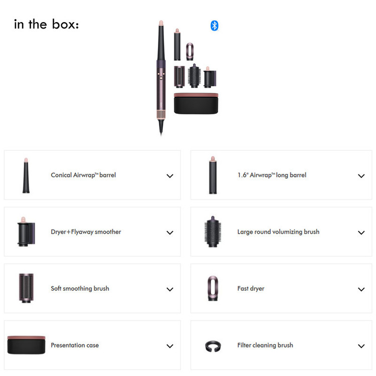 سری شانهدار , سری برسدار گرد پهن , کیف نگهدارنده , خشککن ملایم , متمرکزکننده باریک , متمرکزکننده پهن