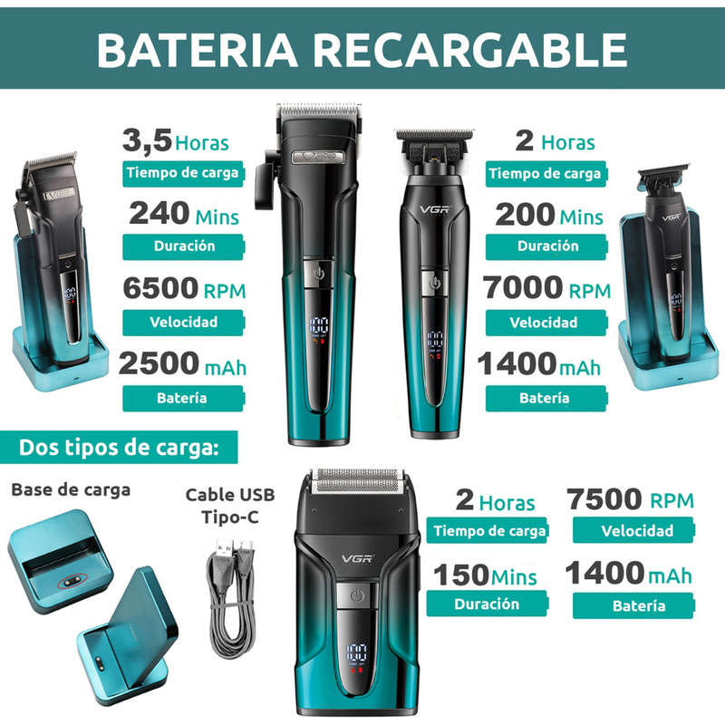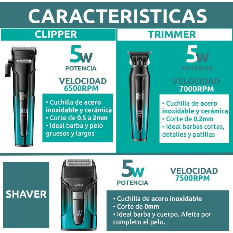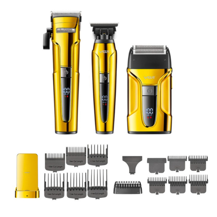 درپوشهای محافظ تیغه ، 11 عدد شانه تنظیم ارتفاع اصلاح ، روغن مخصوص ، برس تمیز کننده ، استند شارژر ، کابلهای شارژر USB و کاور مخصوص شیور میباشد