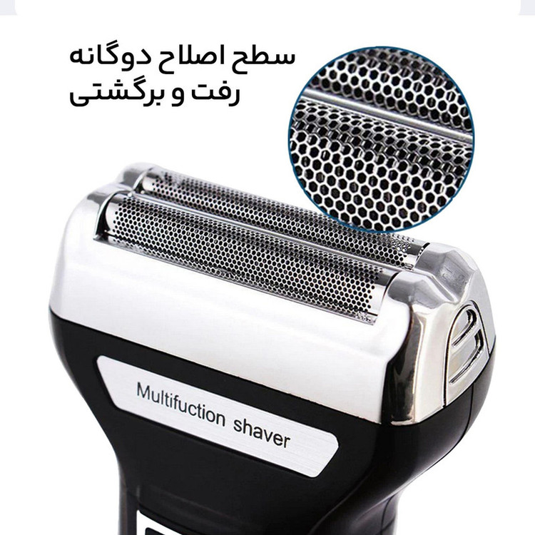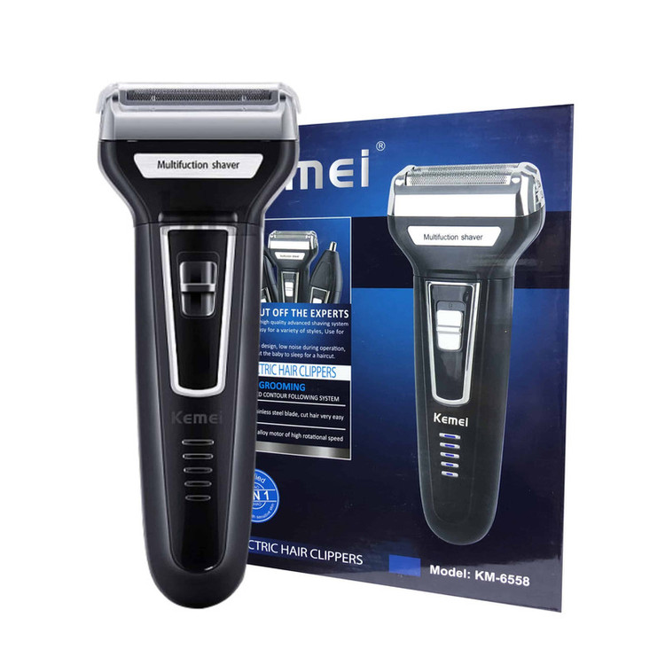 ماشین اصلاح موی صورت کیمی مدل KEMEI KM-6558 ( ریش تراش غلطکی ) ساخت شرکت KEMEI است. ماشین اصلاح کیمی مدل KEMEI KM-6558 دارای سه سری مخصوص که برای اصلاح صورت، سر و گوش بینی کاربرد دارد. سری قلتکی ماشین اصلاح کیمی برای اصلاح صورت ستفاده میشود با سری مخصوص اصلاح سر به همراه شانه می توان از ان برای اصلاح موی سر و صورت استفاده کرد. از سری دیگری که برای اصلاح گوش و بینی قرار داده شده می توان برای مرتب کردن گوش و بینی استفاده کرد 335 ماشین اصلاح موی صورت کیمی مدل KEMEI KM-6558 یک محصول چندکاره با کیفیت بوده که شرکت KEMEI به بازار عرضه کرده و قدرت موتور قابل توجهی دارد. این ماشین اصلاح کیمی شارژی بوده و با یکبار شارژ 60 دقیقه میتوان به طور مستقیم از ان استفاده کرد. ماشین اصلاح کیمی دارای نمایشگر شارز بوده و میزان شارژ را به شما نشان می دهد.ماشین اصلاح موی صورت کیمی مدل KEMEI KM-6558 با کابل USB شارژ می شود. ماشین اصلاح غلطکی کیمی دارای خط زن بوده و به راحتی میتواندی خط ریش خود را انکارد کنید. شما براحتی می توانید از این ماشین اصلاح در مسافرت استفاده کنید و بطور کامل پاسخگوی نیاز شما خواهد بود.