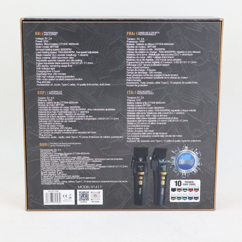 ماشین اصلاح DSP مدل 91417 یک ابزار حرفهای و باکیفیت است که برای آرایشگران و استفاده خانگی طراحی شده است. این دستگاه با موتور قدرتمند 9000 دور در دقیقه و تیغههای ترکیبی از سرامیک و آلیاژ DLC، عملکردی بینقص و سریع را ارائه میدهد. تیغههای پیشرفته این ماشین اصلاح دوام بالا و دقت زیادی در کوتاهی مو دارند. موتور پرقدرت آن با قابلیت تنظیم سرعت در 5 سطح مختلف (7000 تا 9000 دور در دقیقه) مناسب برای انواع موهای ضخیم و نازک است. صفحهنمایش هوشمند این دستگاه اطلاعات دقیقی از سرعت موتور و میزان باتری را نمایش میدهد. باتری لیتیومی قدرتمند این ماشین اصلاح شارژ کامل، امکان استفاده مداوم تا 280 دقیقه را فراهم میکند. این دستگاه همچنین دارای قابلیت تنظیم تیغه برای اندازههای 0.8 تا 1.2 میلیمتر و 10 شانه مختلف برای اصلاح در اندازههای متنوع است. طراحی سبک، ارگونومیک و کمصدای این محصول، آن را به انتخابی ایدهآل برای استفاده طولانیمدت تبدیل کرده است. ماشین اصلاح DSP مدل 91417 با امکانات پیشرفته و کیفیت ساخت بالا، انتخابی مناسب برای افرادی است که به دنبال یک ابزار حرفهای، بادوام و کارآمد هستند.