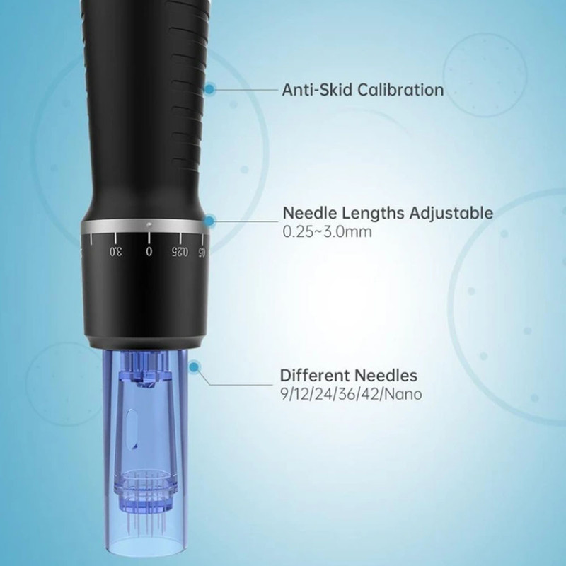بدنه آلومینیومی مقاوم و طراحی ارگونومیک آن باعث میشود دستگاه در دست کاملاً پایدار و راحت باشد. موتور قدرتمند و کمصدا، به همراه قابلیت تنظیم عمق سوزن بین 0٫2 میلی متر تا 3 میلیمتر، امکان انجام درمانهای مختلف را فراهم میسازد؛ از رفع جای جوش و لک گرفته تا جوانسازی، کوچککردن منافذ و افزایش جذب محصولات پوستی.
