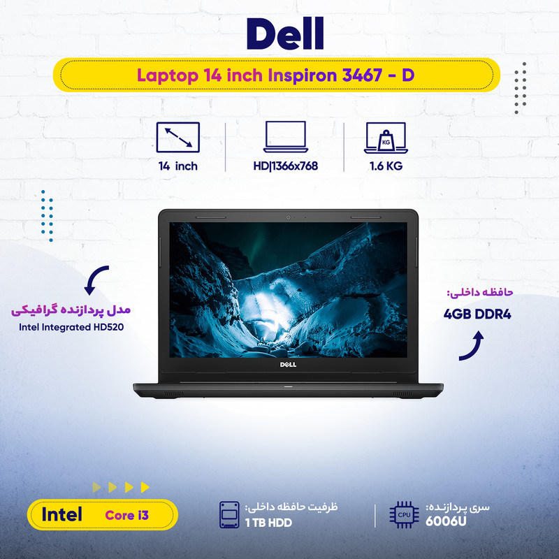لپ تاپ 14 اینچی دل مدل Inspiron 3467 - D