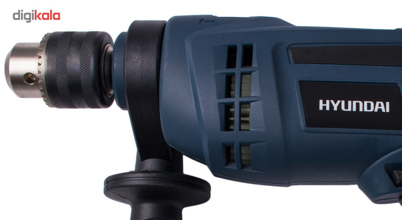اگر قصد تهیهی یک دریل چکشی مناسب با قدرتی قابل قبول دارید، میتوانید از دستگاه فوق استفاده کنید. این دریل از توانی برابر 900 وات برخوردار است و از قابلیت کنترل سرعت گردش سود میبرد. میزان سرعت گردش این دستگاه توسط کلیدی چرخشی که روی شستی قرار دارد تنظیم میشود. بازهی سرعت چرخش این دستگاه 2800-0 دور بر دقیقه است. از دیگر مزایای این دستگاه میتوان به قابلیت چرخش ساعتگرد و پادساعتگرد آن اشاره کرد. سه نظام این دریل چکشی از نوع 13 میلیمتری آچارخور بوده و حداکثر قطر سوراخکاری آن در چوب، فلز و مصالح به ترتیب برابر 25، 10 و 13 میلیمتر است. با کمک این دستگاه میتوانید با دقت و تسلط بیشتری به کار خود بپردازید که این ویژگی به دلیل وجود دستهی کمکی و قفل سوییچ این دریل حاصل شده است. این دسته قابل تنظیم بوده و از قابلیت چرخش 360 درجه سود میبرد. دستگاه فوق با نام « HP9013 » شناخته میشود و یکی از تولیدات شرکت «هیوندای» (Hyundai) است.