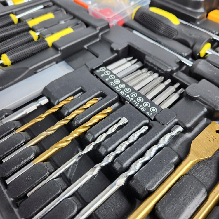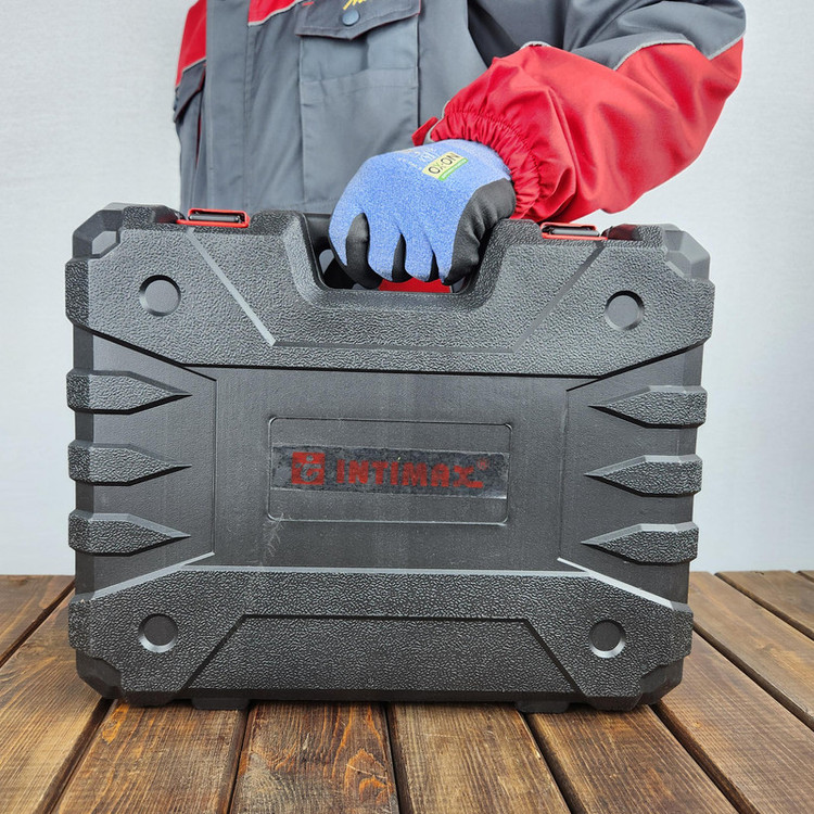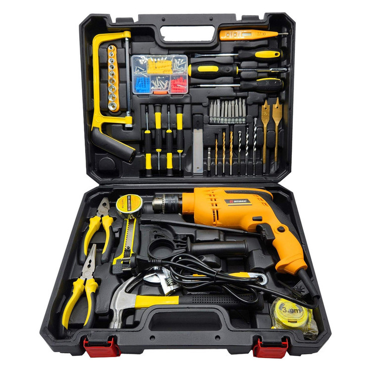 کیت دریل چکشی اینتیمکس یکی از مجموعه هایی می باشد که بیشتر نیاز های کاربران خود را برآورده کرده است این مجموعه ابزار برای کاربری های نیمه صنعتی، تجاری، خانگی بسیار مناسب است . دریل چکشی قرار داده شده در این مجموعه دارای موتور قدرتمند 1200 واتی قرار داده شده و در این دریل سرعت چرخش آزاد 3000-0 دور در دقیقه را به چرخش در می آورد ، همچنین قطر سه نظام این دریل 1.5 الی 13 میلیمتر می باشد. که از ویژگی های منحصر آن می توان به كنترل سرعت (دیمر) گردش با ميزان فشار به شستي، حداکثر توان سوراخ کاری در فلز 13 میلی متر و در مصالح 13 میلی متر و در چوب 30 میلی متر ، دسته کمکی با قابلیت چرخش 360 درجه اشاره کرد . این مجموعه شامل کلیه ابزارهای مصرفی شامل؛ آچار فرانسه ، انبردست، دمباریک، چکش، بکس تک سایز 4 تا 13، متر 3 متری، پیچ گوشتی دوسو و چهارسو سایز بزرگ، پیچ گوشتی نوک خور،، مته آهن سایز 4 و 5 و 6، مته دیوار سایز 5 ،6 و 4، مته برگی سایز 16و 20، 9 عدد نوک پیچ گوشتی،تبدیل نوک پیچ گوشتی به بکس چسب برق، کاتر، فازمتر دیجیتال، آچار سه نظام،5 عدد تیغ کاتر، دو سایز پیچ گوشتی موبایلی دو سو و دو سایز پیچ گوشتی موبایلی چهارسو،کمان اره چوب و فلز، مجموعه سایزبندی پیچ و رولپلاک می باشد .