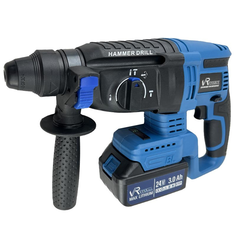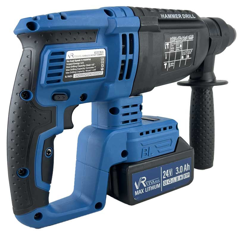 دریل بتن کن شارژی ویوارکس مدل VR2426-RH با داشتن توان 24 ولتی و سرعت گردش 1150 دور در دقیقه به دلیل داشتن تمام استاندارد های لازم و حرفه ای و با دوام بودن، موجب شده تا کاربران بیشتری جذب آن شوند و از کار در حرفه خود لذت ببرند. دیمر به کار برده شده در این دریل بتن کن شارژی موجب می شود کاربر بتواند تسلط و کنترل کافی بر روی سرعت دستگاه خود داشته باشد. از بتن کن شارژی ویوارکس چهارشیار، به منظور انجام فرآیند تخریب سبک و دریلکاری متریالهایی همچون چوب، بتن، سنگ، گچ، سیمان و آجر استفاده میشود. این ابزار شباهت زیادی به چکش تخریب دارد. از دیگر ویژگی های دریل ویوارکس، می توان به بدنه ارگونومیک، دسته کمکی، 3 نظام اتوماتیک چهارشیار، کارایی در سه حالت دریل،تخریب و دریل چکشی، میله تنظیم عمق و… اشاره کرد. میتوان این دریل را به عنوان یک ابزار قابل اعتماد و کارآمد در حفاری بتن معرفی کرد. همچنین این دستگاه بتن کن به دلیل شارژی بودن میتوان در هر زمان و مکان از آن استفاده نمود.