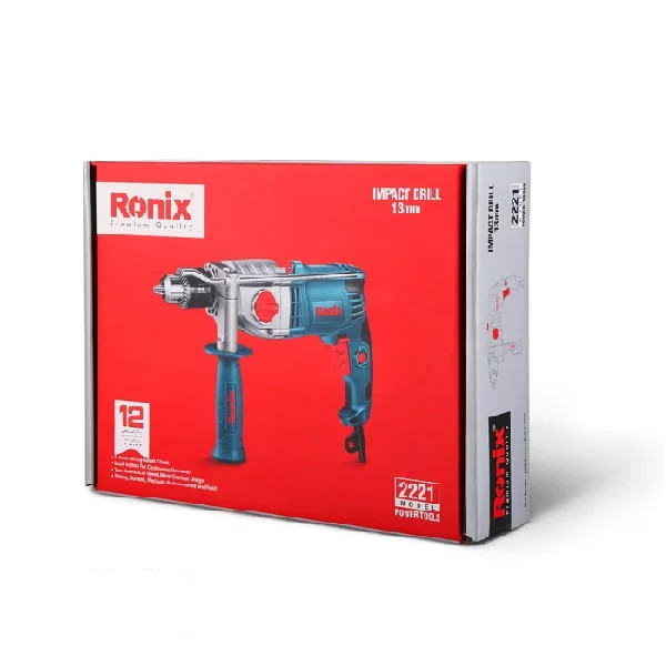 دریل رونیکس مدل 2221 با وزن 3 کیلوگرم و توان موتور 1050 وات دارای قابلیت سوراخکاری چکشی و گیربکس دو سرعته صنعتی 0-1200 و 0-3200 دور در دقیقه میباشد. این دریل برقی دارای سه نظام آچاری 13 میلیمتر است. از دیگر ویژگیهای دریل گیربکسی چکشی رونیکس مدل 2221 میتوان به کلید الکترونیک دیمردار، نیم تنه فلزی، کلید قفل کن، آرمیچر و بالشتکهای صنعتی با بالاترین کیفیت سیم پیچی مطابق با استاندارد CE، طراحی جدید و ارگونومیک بدنه جهت سهولت در کاربری، همراه با دسته جانبی گردان ارگونومیک 360 درجه اشاره کرد.