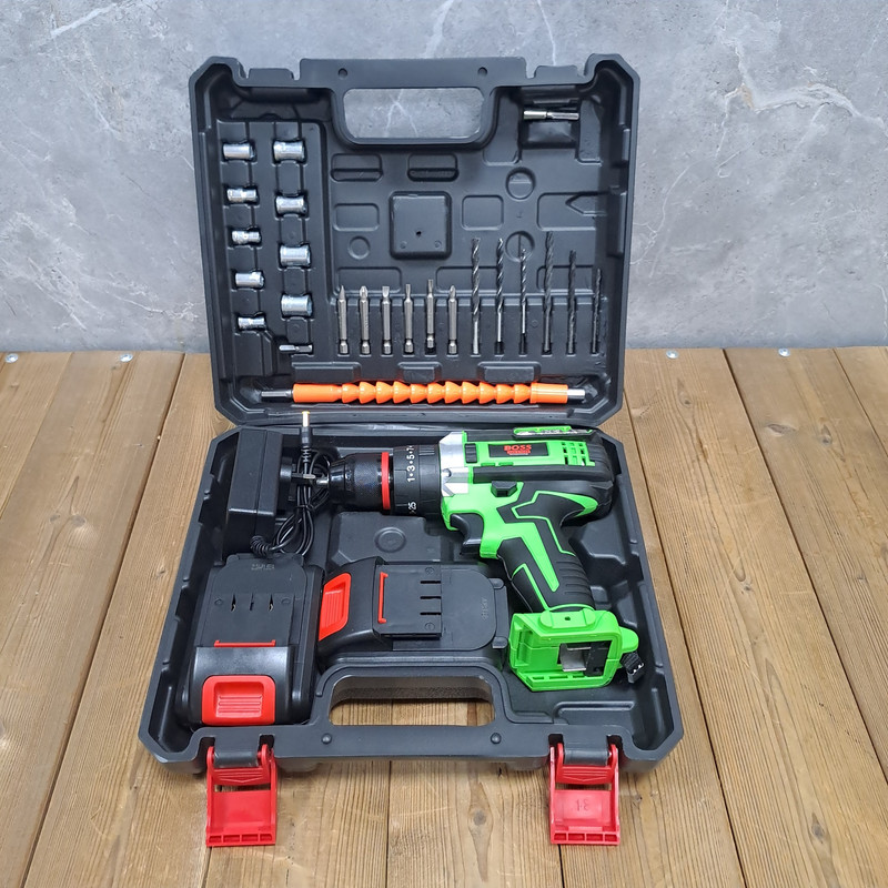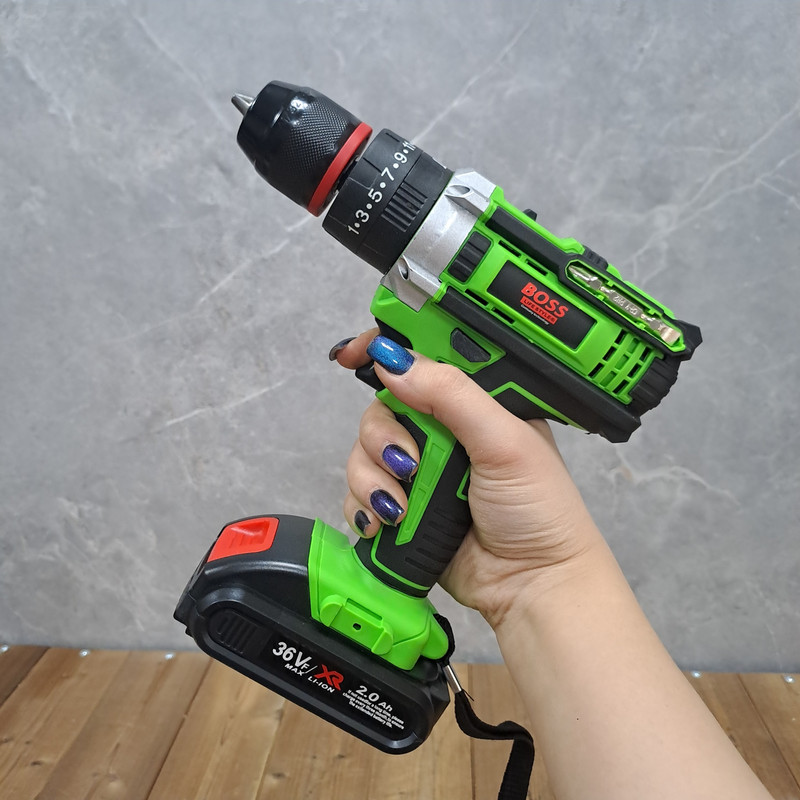 یکی از ابزارهای کارامد در بخش تعمیرات و نگهداری منازل و کارگاه ها، مجموعه دریل پیچ گوشتی شارژی BOSS می باشد که به عنوان یک نیاز مهم در این بخش مورد توجه قرار گرفته است. مجموعه29 عددی دریل پیچ گوشتی شارژی 36 ولت برند BOSS از موتوری قدرتمند با حداکثر سرعت گردش آزاد معادل با 0 تا 950 دور قدرتی 0 تا 2500دور سرعتی بر دقیقه برخوردار میباشد. طراحی موتور دستگاه بهگونهای است که کاربران میتوانند سرعت دریل را از طریق دکمه تعبیه شده در بالای دریل تغییر دهند. علاوه بر این کلید گازی مشکی رنگ نیز امکان تنظیم سرعت چرخش سهنظام را برای استفادهکنندگان فراهم میکند. طراحی ارگونومی پیشرفته و سبکی این دریل شارژی (وزن دریل 1.2 کیلو گرم) مزیت مهمی در بهبود کیفیت کار و جلوگیری از خستگی موثر بهشمار میرود و آن را برای انواع استفادههای خانگی و کارگاهی مناسب می نماید. همچنین دریل پیچ گوشتی شارژی BOSS دارای تورکمتر 1+25 حالته (با امکان انتخاب حالت، پیچ و دریل) و کلید تغییر جهت (چپگرد و راستگرد) میباشد .این محصول دارای دو باتری 36 ولت و یک عدد شارژر فست شارژ داخل یک کیف BMC مستحکم قرار دارد .