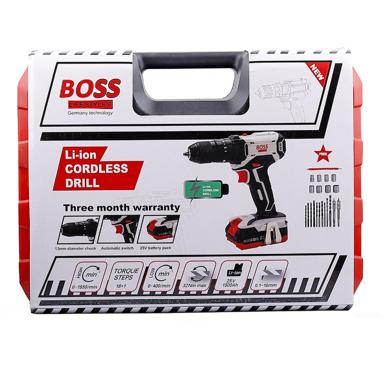 دریل پیچ گوشتی چکشی شارژی مدل LIFE_STYLE یکی دیگر از محصولات کمپانی باس جنتلمن هنرکار است که با عرضه در ابزار فروش شهر در دیجی کالا یکی از بزرگترین پلتفرم های فروش در بازار اینترنتی ایران است به همراه داشتن دریل پیچگوشتی در کنار کیف ابزار، در انجام کارهای تعمیراتی کمکی زیادی به شما خواهد کرد. این دستگاه جایگزین مناسبی برای پیچگوشتیهای معمولی است و موجب بالارفتن سرعت کاربر در حین کار میشود و باید برای این منظور مجموعهای کامل از سریهای پیچگوشتی تهیه کنید. دریل پیچ گوشتی شارژی باس مدل LIFE_STYLE با توجه به سرعت چرخش مناسبی که دارد، در حالت دریل نیز عملکرد خوبی خواهد داشت. دارای سه نظام 13 میلیمتر خودکارو فلزی می باشد. سرعت این محصول قابلکنترل است و کاربر میتواند آن را در دو بازهی 0 تا 450 و 0 تا 1650 دور بر دقیقه تنظیم کند. گشتاور این دریل پیچگوشتی نیز مانند سرعت آن قابلتنظیم است. این محصول دارای باتری لیتیومیونی است که ولتاژی 25 ولتی و ظرفیتی بالایی دارند. وجود روکش لاستیکی برای جلوگیری از لغزش از دیگر مزایای این دستگاه است. از دیگر مزایای این دستگاه کیفیت بالا و قیمت رقابتی ان است