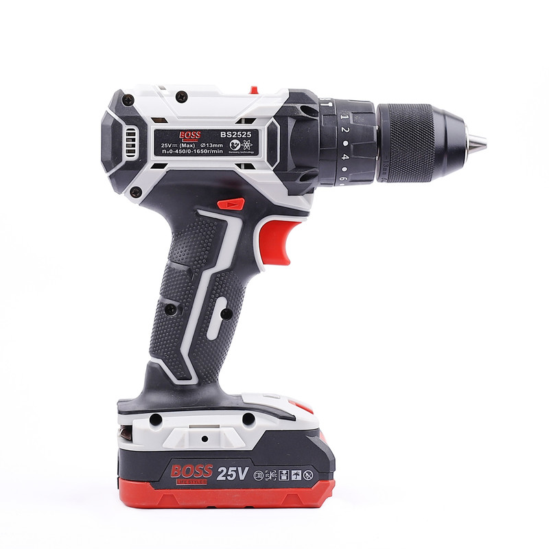 دریل پیچ گوشتی چکشی شارژی مدل LIFE_STYLE یکی دیگر از محصولات کمپانی باس جنتلمن هنرکار است که با عرضه در ابزار فروش شهر در دیجی کالا یکی از بزرگترین پلتفرم های فروش در بازار اینترنتی ایران است به همراه داشتن دریل پیچگوشتی در کنار کیف ابزار، در انجام کارهای تعمیراتی کمکی زیادی به شما خواهد کرد. این دستگاه جایگزین مناسبی برای پیچگوشتیهای معمولی است و موجب بالارفتن سرعت کاربر در حین کار میشود و باید برای این منظور مجموعهای کامل از سریهای پیچگوشتی تهیه کنید. دریل پیچ گوشتی شارژی باس مدل LIFE_STYLE با توجه به سرعت چرخش مناسبی که دارد، در حالت دریل نیز عملکرد خوبی خواهد داشت. دارای سه نظام 13 میلیمتر خودکارو فلزی می باشد. سرعت این محصول قابلکنترل است و کاربر میتواند آن را در دو بازهی 0 تا 450 و 0 تا 1650 دور بر دقیقه تنظیم کند. گشتاور این دریل پیچگوشتی نیز مانند سرعت آن قابلتنظیم است. این محصول دارای باتری لیتیومیونی است که ولتاژی 25 ولتی و ظرفیتی بالایی دارند. وجود روکش لاستیکی برای جلوگیری از لغزش از دیگر مزایای این دستگاه است. از دیگر مزایای این دستگاه کیفیت بالا و قیمت رقابتی ان است