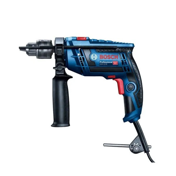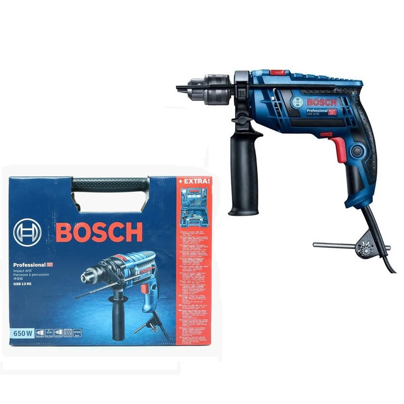 دریل چکشی بوش مدل GSB 13 RE Extra با موتور قدرتمند و پر توان 650 وات قادر است ضربات با حداکثر سرعت ضربه زنی 0 تا 47000 ضربه در دقیقه و با سرعت چرخش آزاد 0 تا 3150 دور در دقیقه وارد کند .این دریل مجهز به دسته کمکی ارگونومیک گردان ، جهت تسلط بهتر و اعمال نیروی بیشتر به محل سوراخکاری است و دارای کاربری سوراخکاری ، سوراخکاری چکشی است و ابزاری مناسب برای کارهای ساختمانی و عمرانی می باشد . همچنین این دستگاه توانایی سوراخ کاری در چوب ، فلز ، فولاد ، بتن و انواع مصالح ساختمانی را دارد . این ابزار برقی دارای سه نظام آچاری با حداقل 1.5 و حداکثر 13 میلیمتر و حداکثر قطر سوراخکاری با این دستگاه در فلز 13 میلی متر ، چوب 25 میلی متر ، فولاد 10 میلی متر است .همراه این محصول یک بسته 4 عددی مته فلز بوش ، یک بسته 4 عددی مته الماسه بوش ، یک بسته 4 عددی مته چوب بوش ،یک مجموع 10 عددی سری پیچ گوشتی بوش،یک عدد رابط نگهدارنده سری پیچ گوشتی مغناطیسی،یک بسته 35 عددی پیچ و یک بسته 42 عددی رولپلاک به خریدار عرضه میگردد.متههای فوق از نوع الماسه،فلزو چوب بوده و برای سوراخ کردن سطوحی ساخته شده از مصالح ساختمانی مانند گچ، سیمان، بتن،سنگ،چوب و فلز مناسب است.
