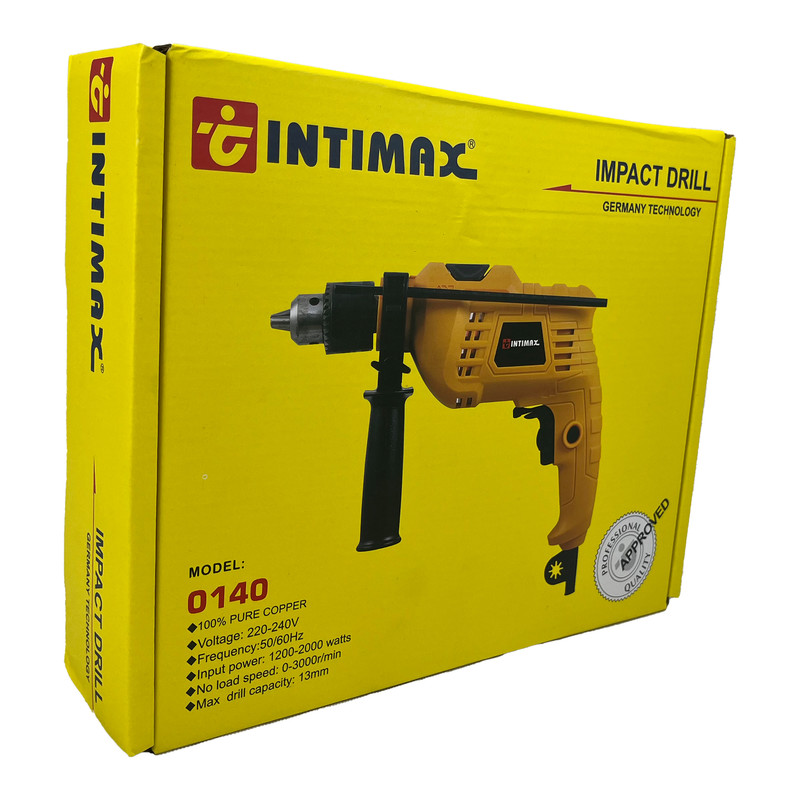 دریل فوق از شرکت اینتیمکس نیروی خود را از طریق برق شهری تامین میکند. بیشینه سرعت دوران این دریل 3000 دور بر دقیقه است. این دریل توانایی چرخش در دو جهت را دارد. با استفاده از این دریل قادر خواهید بود سوراخهایی حداکثر با قطر 13 میلیمتر در فلز و 13 میلیمتر در سیمان و تا 35 میلیمتر در چوب ایجاد کنید. این دریل با داشتن قابلیت چکشی و توان 1200 الی 2000 وات دریلی مناسب برای مصارف خانگی و تجاری است. این دریل مجهز به دسته جانبی دورانی و نیز شاخص عمق سنج نیز است. نحوه استفاده از قابلیت چکشی روی این دریل طوری طراحی شده که بتوان با کمترین نیرو، از حال معمولی به حالت چکشی تغییر وضعیت داد. این دریل از کیفیت بسیار مطلوبی برخوردار می باشد.