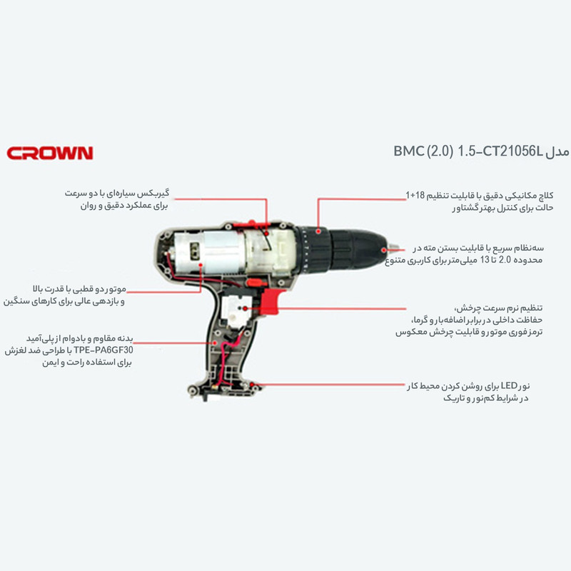دریل پیچ گوشتی شارژی کرون مدل CT21056L BMC