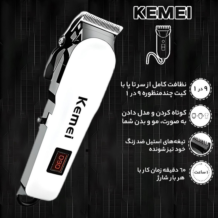 - دارای قلاب آویز- دارای اهرم برای تنظیم ارتفاع کوتاه کردن مو- دارای دکمه خاموش و روشن- نمایشگر شارژ دارد