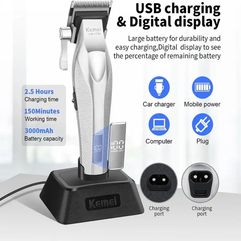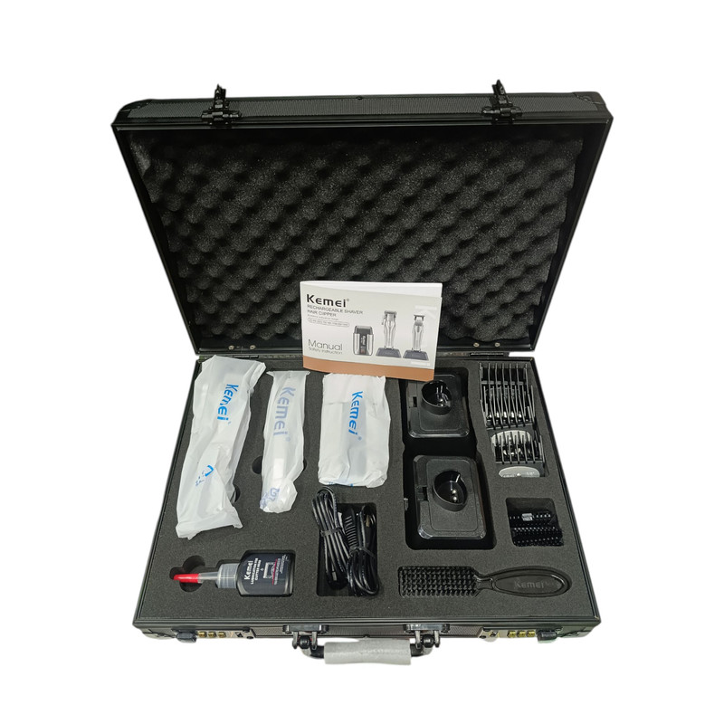 حجم زن ، خط زن ، شیور ، 2 عدد استند شارژ ، محافظ تیغه ، برس ، روغن ، دو عدد کابل شارژ ، 11 عدد شانه اصلاح ، کیف