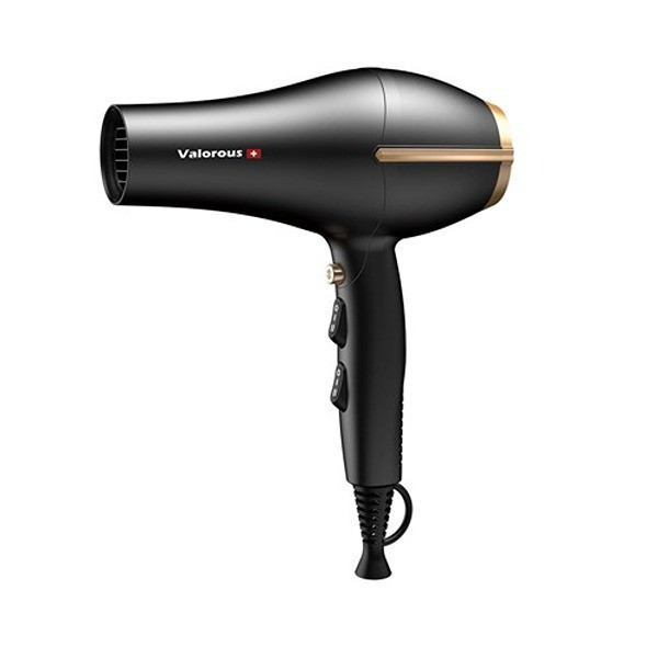 سشوار فوق حرفهای سالنی برند والوروس(Valorous)، مدل VL-504 2600 وات، همراه با دیسپانسر مناسب استفاده در سالن دارای 3 متر کابل، دمای بالا، باد پرقدرت، موتور AC 2600 وات، بسته بندی محکم (Hard Box) طراحی کشور سوئیس