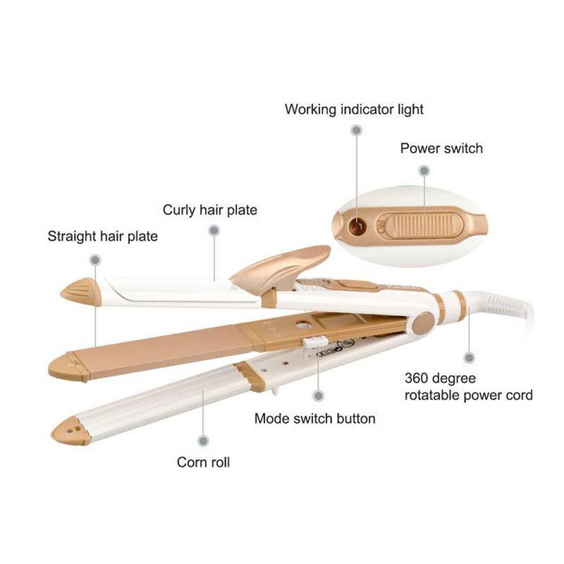 منبع تغذیه برق شهری مدت زمان گرم شدن 14 ثانیه دارای فنآوری تولید یون دارای دکمهی روشن/خاموش دارای حلقه آویز کاربرد حالت دهی و صاف کردن موی سر قابل استفاده بصورت خشک و مرطوب قطر فر کننده 21 الی 30 میلیمتر