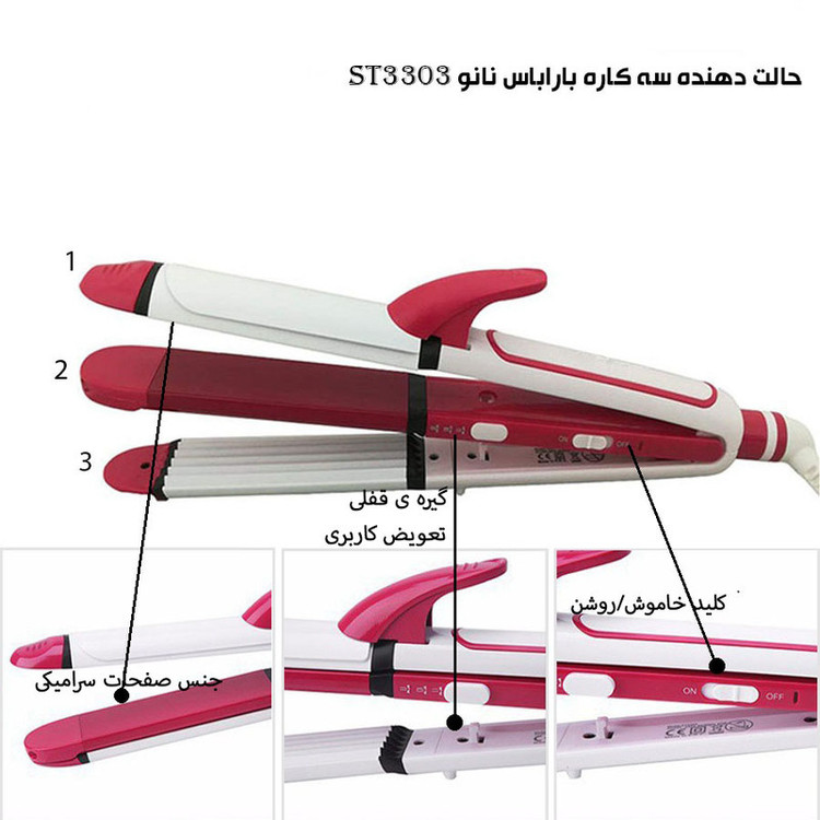 صاف کننده، فر کننده و حالت دهنده ی مو ابعاد صفحات گرم کننده 110 در 30 میلیمتر