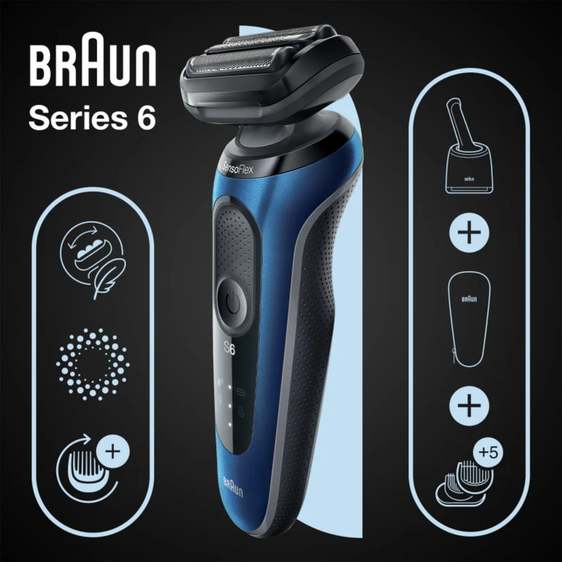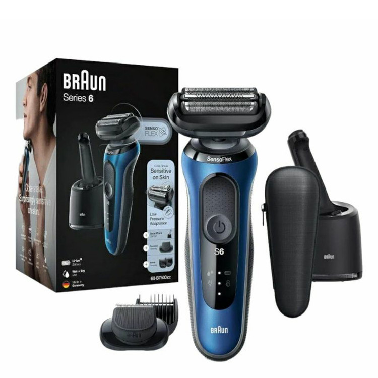 ماشین اصلاح مرطوب و خشک 61-B7500cc سری 6 با ایستگاه تمیز کردن و پیوست EasyClick یک اصلاح نزدیک مخصوصاً روی پوست ملایم است.