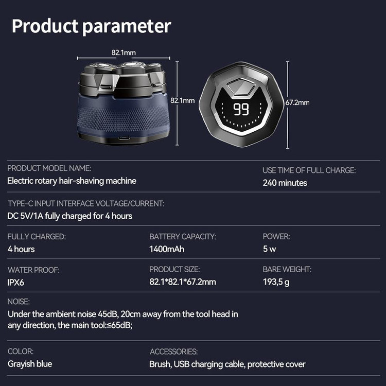 قابلیت اصلاح با شماره صفر , نمایشگر میزان شارژ , مقاوم در برابر آب , ضد آب (قابلیت استفاده زیر دوش) , استفاده به صورت خشک و مرطوب , طراحی ارگونومیک