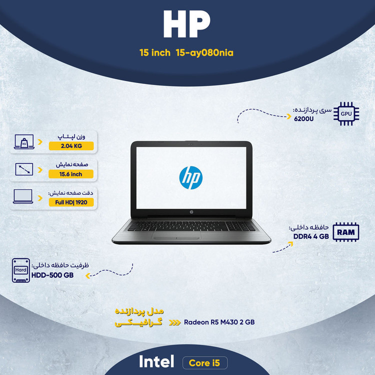 لپ تاپ 15 اینچی اچ پی مدل 15-ay080nia