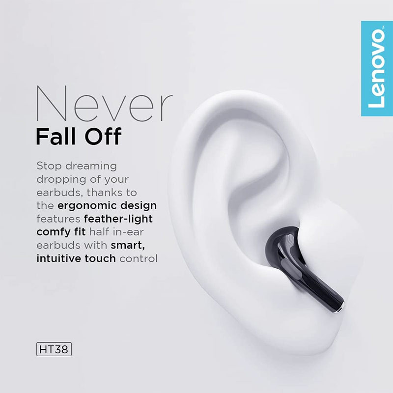 در ادامه باید گفت که قطر درایور این محصول برابر با 13 میلیمتر است و همین مورد به بهتر شنیده شدن موسیقی کمک می کند تا امکان خارج شدن صوت از درایور برای هندزفری بیشتر باشد. این حالت کمک میکند تا شما بتوانید جزئیات بیشتری را نیز با کیفیت مطلوبی بشنوید. تاخیر پخش صدا در هندزفری Lenovo HT38 ناچیز است و برای شما خیلی ملموس نخواهد بود. طبق گفته کمپانی، این تاخیر به حدود 65 میلی ثانیه میرسد که برای بازی و گیم مناسب است. البته این میزان از تاخیر شاید برای بسیاری از بازیها مناسب نباشد، با این حال باید به آن توجه داشت و این مقوله را مورد توجه قرار داد.باتری ایرفون های لنوو HT38 تقریباً حدود 4 الی 5 ساعت بسته به موسیقی و حجم صدایی که گوش می کنید، همچنین حالتی که برای استفاده دارید، شما را همراهی می کنند و به پخش موسیقی و صوت برای شما می پردازند؛ در حالت استندبای نیز حفظ باتری به حدود 180 ساعت خواهد رسید و عوامل مختلفی در متغیر بودن اعداد دخیل هستند.یکی از قابلیت هایی که در این هندزفری وجود دارد پشتیبانی از AAC است، که این امر نیز نشان می دهد که هندزفری در نرخ بیت معین، کیفیت و جزئیات بیشتری را پخش میکند. همین طور باید اشاره کرد که قابلیت دیگری که برای هندزفری در نظر گرفته شده است، ویژگی Hi-Fi است. این ویژگی سبب می شود که بتوانید جزئیات بیشتری از موسیقی را شنیده و کیفیت آن به خوبی حفظ شود. تکنولوژی HiFi کمک می کند که موسیقی به آن شکلی که ضبط شده شنیده شود و تأثیر منفی روی آن برای افت کیفیت نمی گذارد.برای اینکه بتوانید با خیال راحت تری از این هندزفری استفاده نمایید، شرکت لنوو آن را در برابر رطوبت مقاوم ساخته است. بنابراین می توانید با خیالی راحت از هندزفری هنگام ورزش کردن استفاده نمایید، چراکه در برابر عرق کردن و... نیز مقاوم است. این استاندارد، به معنای ضد آب بودن دستگاه نیست!