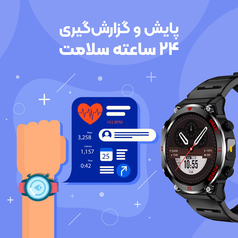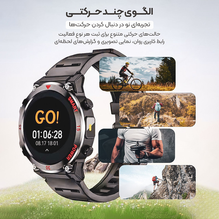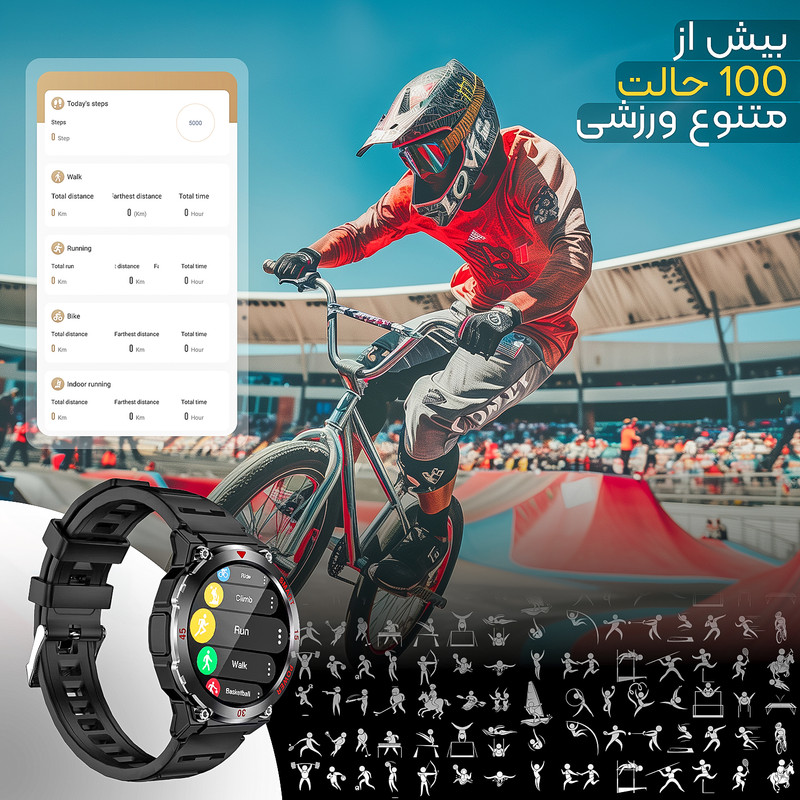 پشتیبانی از تمرینات مختلف ورزشی , محاسبه میزان کالری مصرفی , محاسبه مسافت طی شده