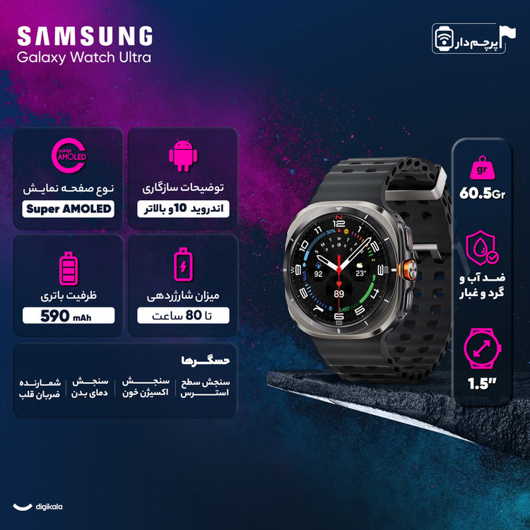 سایز قاب ساعت هوشمند : 47 میلیمتر