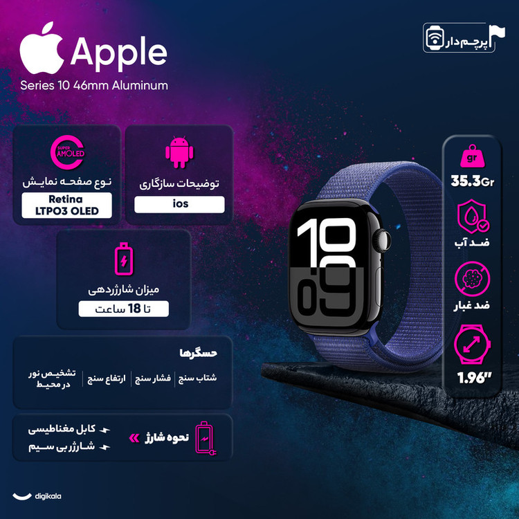 سایر مشخصات سخت افزاری : سیستم عامل WatchOS نسخه 11 / پردازنده مرکزی دو هستهای / پردازنده گرافیکی PowerVR / شبکه بیسیم Wi-Fi 802.11 b/g/n (دو بانده) / مقاوم در برابر نفود آب تا فشار 5 اتمسفر (عمق 50 متر) / گواهی IPX6 برای مقاومت در برابر نفوذ گردوغبار