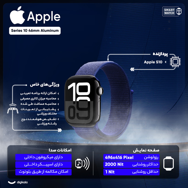 سایر مشخصات سخت افزاری : سیستم عامل WatchOS نسخه 11 / پردازنده مرکزی دو هستهای / پردازنده گرافیکی PowerVR / شبکه بیسیم Wi-Fi 802.11 b/g/n (دو بانده) / مقاوم در برابر نفود آب تا فشار 5 اتمسفر (عمق 50 متر) / گواهی IPX6 برای مقاومت در برابر نفوذ گردوغبار