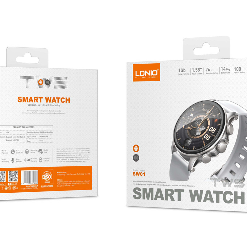 ساعت هوشمند 1.58 اینچ الدینیو مدل SW01 با بند سیلیکون