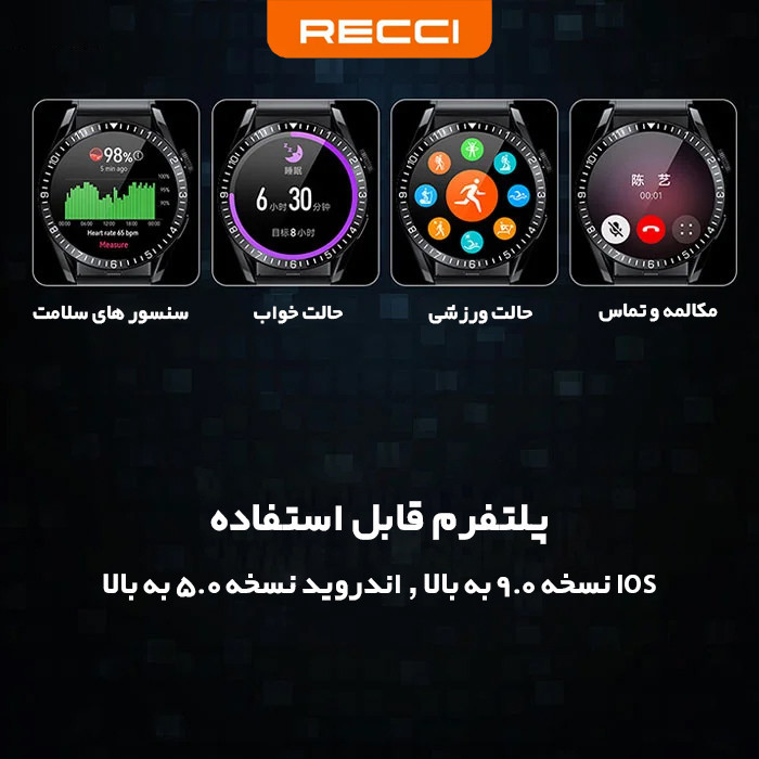 صفحه نمایش رنگی , صفحه نمایش لمسی , کنترل موسیقی (Music Player) , کنترل سطح اکسیژن خون , قابلیت مکالمه مستقیم , قابلیت مکالمه از طریق بلوتوث , پشتیبانی از زبان فارسی در منو و سیستمعامل