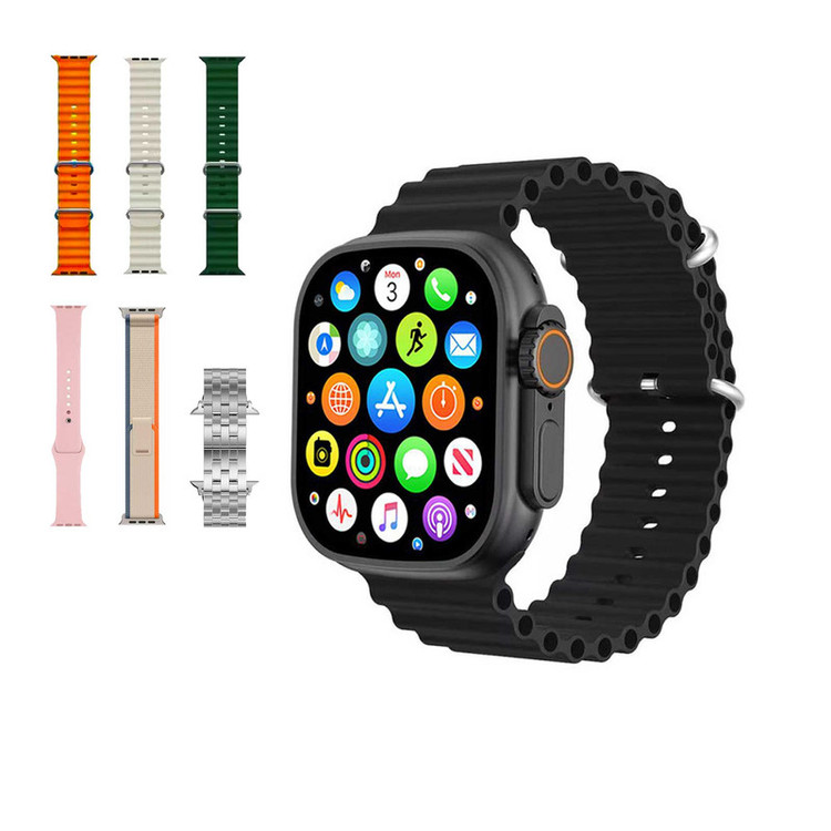 ساعت هوشمند ورنا مدل W49 Ultra with 7 bands and airpod pro دارای قابلیت های کنترل موسیقی (Music Player)، قابلیت مکالمه از طریق بلوتوث، پشتیبانی از زبان فارسی در منو و سیستمعامل، قابلیت تغییر طرح ساعت یا تم بند فلز