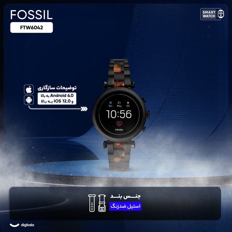 آنالیز حرکت، کنترل موزیک، کنترل ضربان قلب، Google Pay™, Gen 4 Smartwatch Sloan HR Two-Tone Black and Tortoise Stainless Steel Powered with Wear OS by Google