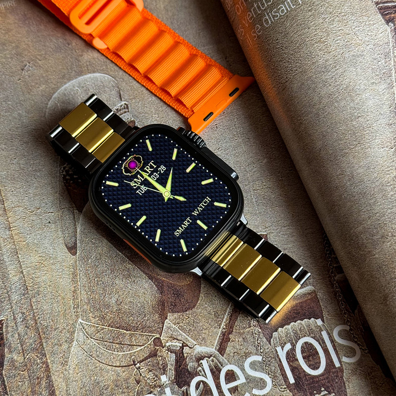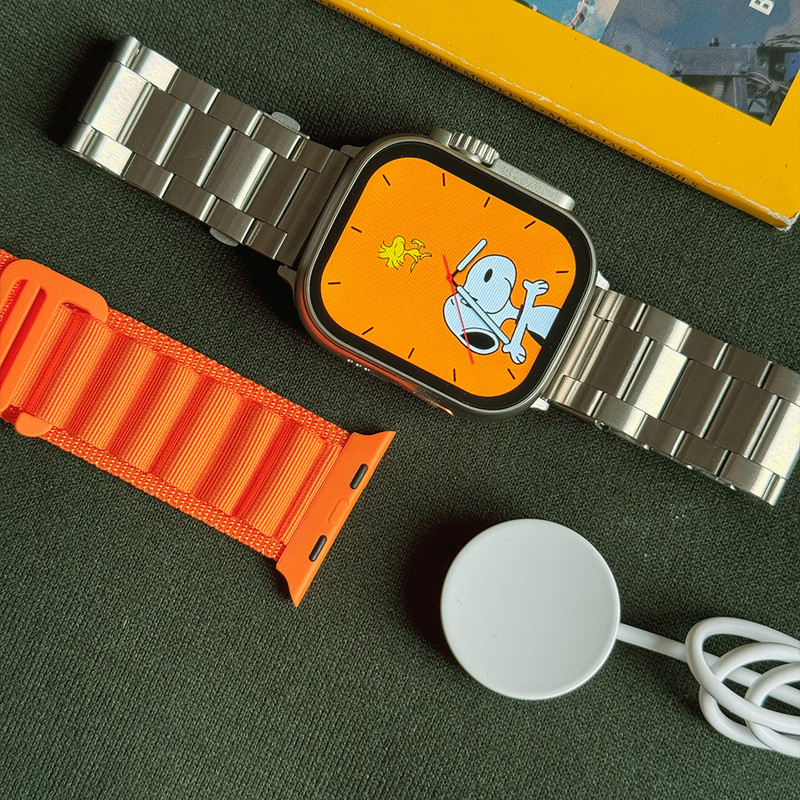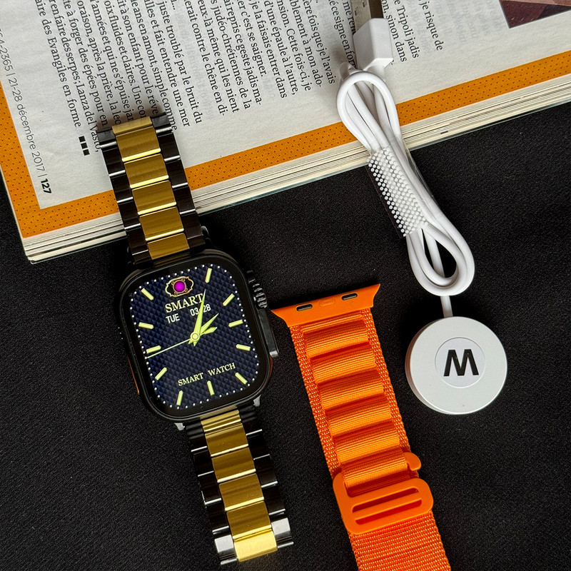 ساعت هوشمند / همراه بند لوپ تریل / بند استیل رولکسی / شارژر وایرلس / دفترچه راهنمای فارسی