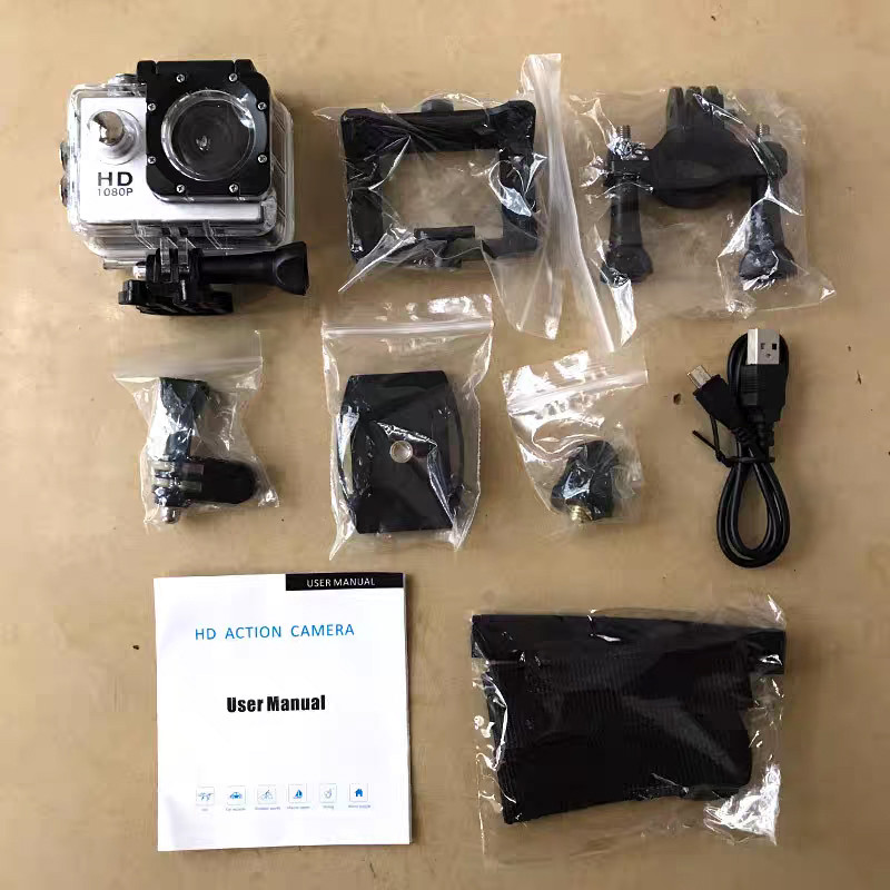 اقلام همراه دوربین: پایه هلمت و کاسکت 2 عدد گیره اتصال ست گریپ پیچ اتصال قاب ضد آب و ضد ضربه کابل دفترچه راهنما
