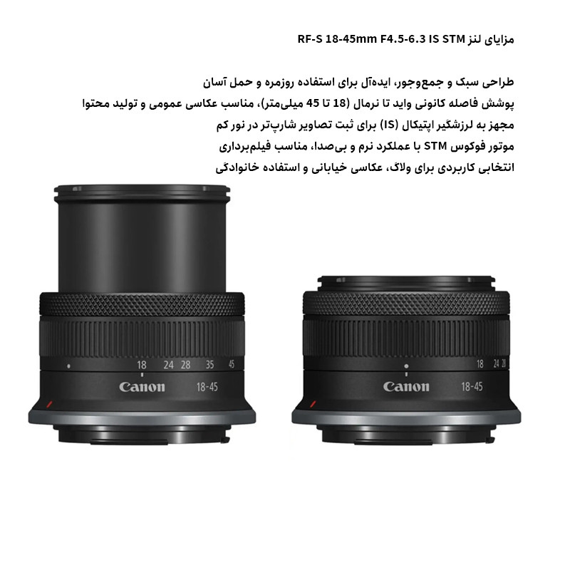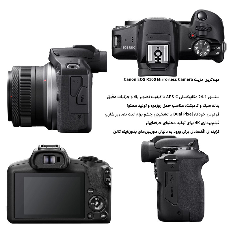 کیت دوربین بدون آینه Canon EOS R100 with RF-S 18‑45mm به همراه باتری اضافی قابل شارژ، انتخابی بینظیر برای کسانی است که میخواهند از تولید محتوا، عکاسی روزمره یا سفرهای تصویری نهایت استفاده را ببرند. این کیت کاملتر و کاربردیتر از نسخههای استاندارد است، چون علاوه بر دوربین و لنز حرفهای، یک باتری مجزا بهعنوان پشتیبان دارد تا هیچ لحظه مهمی را از دست ندهید.کیفیت تصویر و عملکرد حرفهای این دوربین بدون آینه با سنسور APS-C 24.1 مگاپیکسلی و پردازشگر DIGIC 8، تصاویری روشن، دقیق و با جزئیات بالا ارائه میدهد. سیستم فوکوس خودکار Dual Pixel CMOS AF باعث میشود سوژهها با دقت و سرعت بالا دنبال شوند و برای عکسبرداری پرتره، خیابانی یا محتوای ویدئویی کاملاً مناسب باشد. پشتیبانی از فیلمبرداری 4K نیز این کیت را به گزینهای عالی برای ولاگرها و تولیدکنندگان محتوا تبدیل میکند. لنز استاندارد همهکاره RF-S 18-45mm F4.5-6.3 IS STM همراه کیت، پوشش فاصلهی کانونی واید تا نرمال را فراهم میکند که برای موقعیتهای مختلف عکاسی مناسب است. موتور فوکوس STM بیصدا و روان و تثبیتکننده تصویر (IS) باعث ثبت نتایج واضح حتی در فیلمبرداری با دست میشود.باتری اضافی مساوی است با زمان بیشتر برای خلاقیت این کیت با یک باتری قابلشارژ اضافی ارائه میشود که ظرفیت حدود 950 mAh دارد و مخصوص مدلهای Canon با باتری LP-E17 طراحی شده است. باتری دوم به شما امکان میدهد مدت زمان کار با دوربین را بهطور قابلتوجهی افزایش دهید، بدون اینکه نگران تمام شدن شارژ در لحظات مهم باشید. باتری دارای پورت USB-C برای شارژ مستقیم است و میتواند به سرعت کامل شود، بنابراین در سفر یا روزهای طولانی تصویربرداری بسیار کاربردی است.چرا این باندل ارزش بیشتری دارد؟برخلاف بستههای معمولی که فقط دوربین و لنز دارند، این پکیج با باتری اضافه عرضه میشود؛ یعنی شما نیازی به خرید جداگانه باتری دوم ندارید، زمان کار و فیلمبرداریتان افزایش پیدا میکند و بدون توقف میتوانید پروژههای تصویریتان را انجام دهید. این ویژگی بخصوص برای تولید محتوا، جلسات عکاسی طولانی و سفرهای کاری اهمیت زیادی دارد.