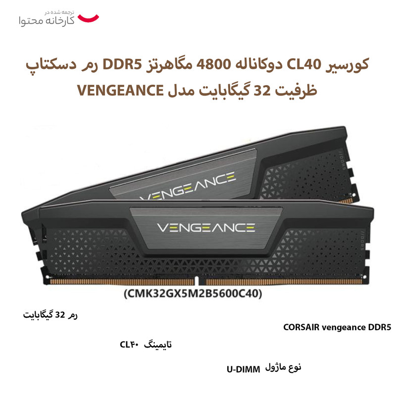 تعداد ماژولدو عددظرفیت هر ماژول16 گیگابایتظرفیت کلی32 گیگابایتنوع ماژولU-DIMMتایمینگCL40نوع حافظهDDR5