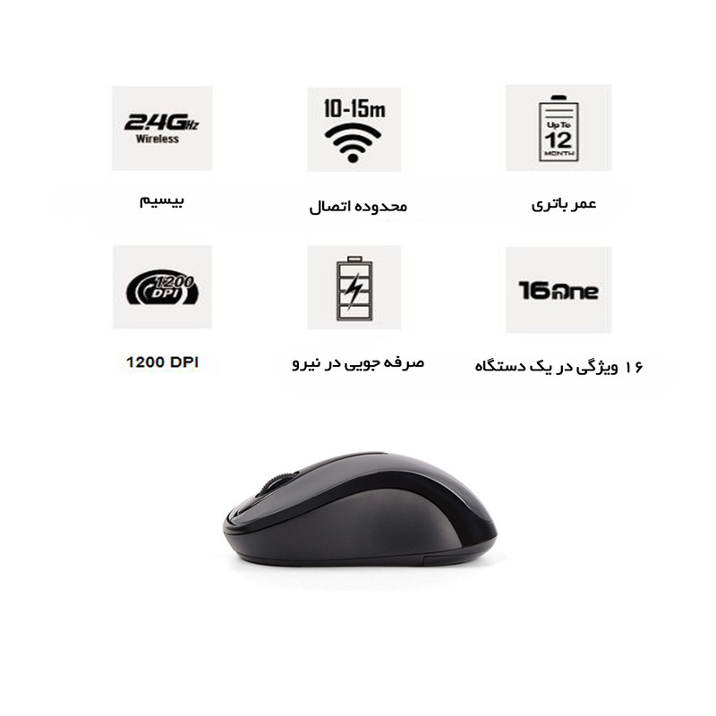 یک ماوس فانتزی با طراحی فوق العاده جهت حمل آسان برای کسانی که قصد دارند لپ تاپ خود را جابجا کنند . با کلیک های بیصدا . این ماوس با ردیابی بسیار بالا سهولت کار شما را بیش ار بیش میکند.برد 15 متری یکی دیگر از ویژگی های این ماوس است.