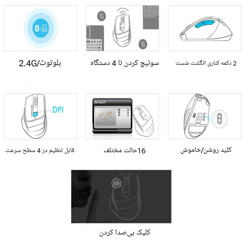 ماوس ای فورتک مدل FSTYLER_FB_35S با طراحی و ویژگی های فوق العاده تولید و عرضه شده و از جدیدترین متددها بهره میبرد تا سهولت در کار را بیشتر کند. این ماوس دو حالته هم از طریق بلوتوث و هم به صورت بی سیم ( وایرلس ) متصل میشود. مزید دیگر این ماوس متصل شدن همزمان به 4 دستگاه است ( از طریق سویچ ).با داشتن این ماوس میتوانید به هر دستگاهی که بلوتوث دارد مثل تبلت و .. آیپد (اپل ) و یا از طریق دانگل میتوانید به کامپیوتر و لپ تاپ متصل شوید.