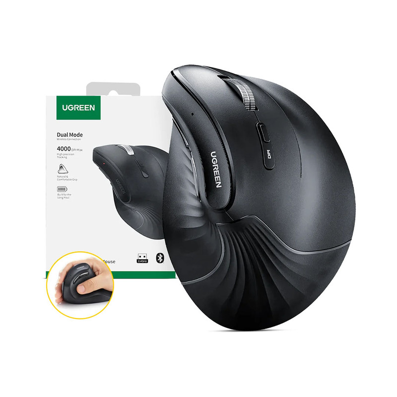 ماوس بیسیم Ugreen MU008 یه ماوس ارگونومیک عمودیه که برای استفاده طولانیمدت بدون خستگی طراحی شده است. این مدل از اتصال دوگانه بلوتوث ۵.۰ و دانگل ۲.۴ گیگاهرتز پشتیبانی میکند و تا ۱۰ متر بُرد ارتباطی دارد. طراحی عمودی آن باعث میشود مچ دست توی وضعیت طبیعیتری قرار بگیرد و فشار کمتر بشود ، برای همین امر گزینهٔ خیلی خوبی برای کارهای اداری و روزمره می باشد.