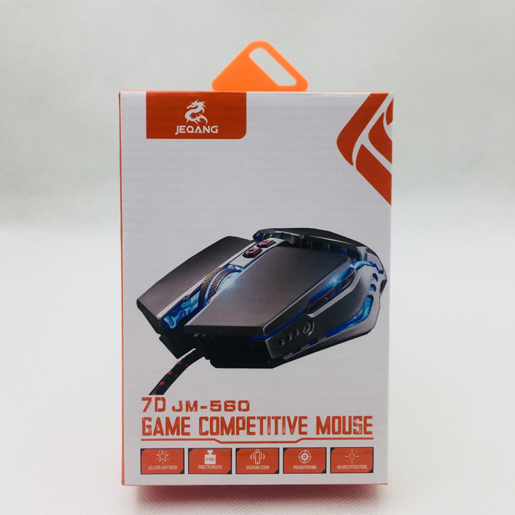 جکنگ JM-560 دارای 7 کلید می باشد که دوکلید برای تنظیم DPI ماوس از 1200 تا 3600 می باشد و دو کلید در کنار ماوس علاوه بر کلید های اصلی و اسکرول تعبیه شده اند. نورپردازی چندرنگ این ماوس جلوه زیبایی به میز شما خواهد بخشید و روکش کابل استفاده شده در ماوس از جنس کنف می باشد که از عمر بالاتری درمقایسه با کابل های معمولی برخوردار است.