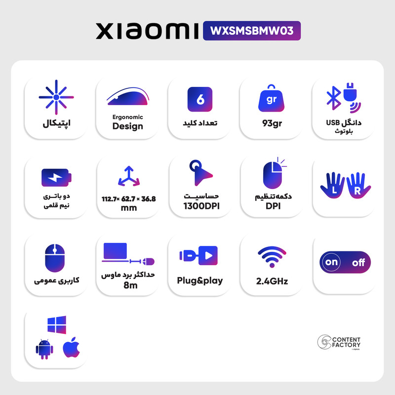 ماوس بی سیم مدل WXSMSBMW03 از یک طراحی ارگونومیک و مینیمال برخوردار بوده و ضمن ایجاد راحتی در هنگام استفاده، ظاهری فوقالعاده زیبا را در اختیار کاربران خود قرار میدهد. شما میتوانید این محصول از شیائومی را به راحتی و به وسیله دانگل USB متصل کرده و از طریق بلوتوث از آن استفاده کنید. حسگر اپتیکال شیائومی WXSMSBMW03 از دقت 1300 DPI برخوردار بوده و به محدوده دقت فوقالعاده 800 تا 1600 مجهز شده است. این ویژگی باعث میشود که بتوان از این ماوس برای انواع کاربری استفاده کرد. کمپانی شیائومی موجبات دستیابی به ین امکانات را با قیمت ایدهآل فراهم ساخته است.