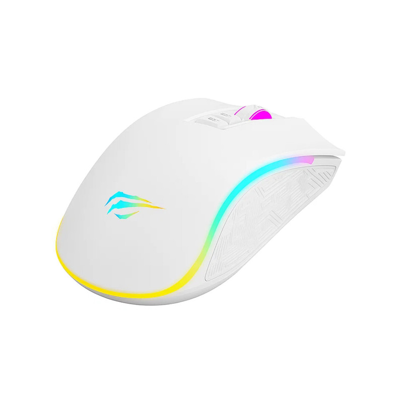 ماوس Havit MS1034 در رنگ سفید، مثل یک قطعه تکنولوژی تازهمتولدشده روی میز کار مینشیند؛ تمیز، مدرن و آماده برای اجرای فرمانها. طراحی ارگونومیک متقارن آن کاری کرده که زیر دست، حس آشنایی و راحتی بدهد—چه برای کاربران راستدست و چه چپدست.